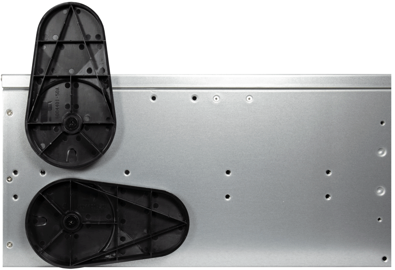 Durch das optional erhältliche Erweiterungsset "Tower" lässt sich das Gehäuse auch als Stand-Gehäuse nutzen und mit Füßen und obenliegenden Transportgriffen versehen.